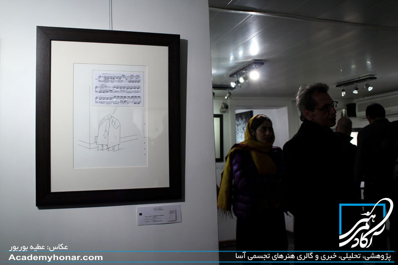 بنگاه شادمانی از چشمه بیپایان ایدهها و سوژههایم میباشد که بخش کوچکی از آن را دراین نمایشگاه میبینید. دهها طرح دیگر درباره موسیقی دارم،اگر عمری باقی باشد ادامه میدهم. مرکب طرحهایی که در نمایشگاه مشاهده میکنید، هنوز خشک نشده است،همه آنها را یک ماه پیش تا به امروز کشیدهام!»