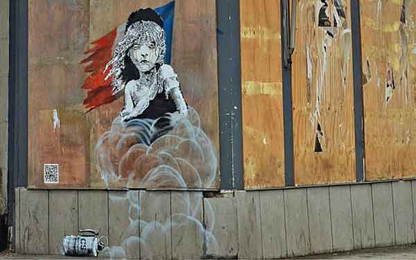 یک نقاشی دیواری از بنکسی با موضوع استفاده‌ از گاز اشک‌آور توسط پلیس فرانسه علیه مهاجرین، پس از نقش‌بستن روی ساختمانی مقابل سفارت فرانسه، به‌سرعت پوشانده شد.